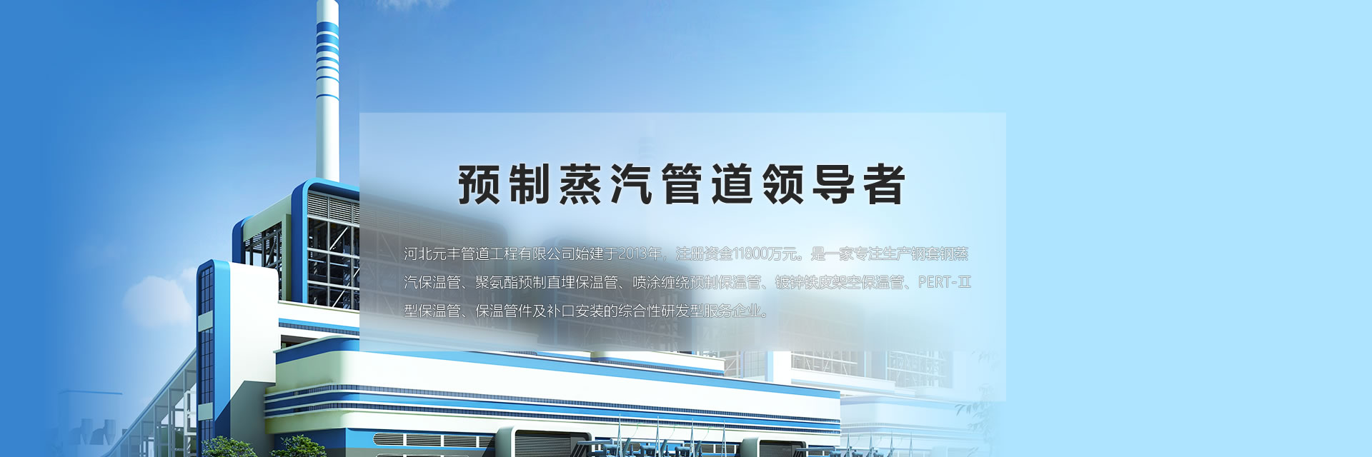 河北元豐管道工程有限公司始建于2013年,注冊資金11800萬元。是一家專注生產鋼套鋼蒸汽保溫管、聚氨酯預制直埋保溫管、噴涂纏繞預制保溫管、鍍鋅鐵皮架空保溫管、PERT-Ⅱ型保溫管、保溫管件及補口安裝的綜合性研發(fā)型服務企業(yè)。
